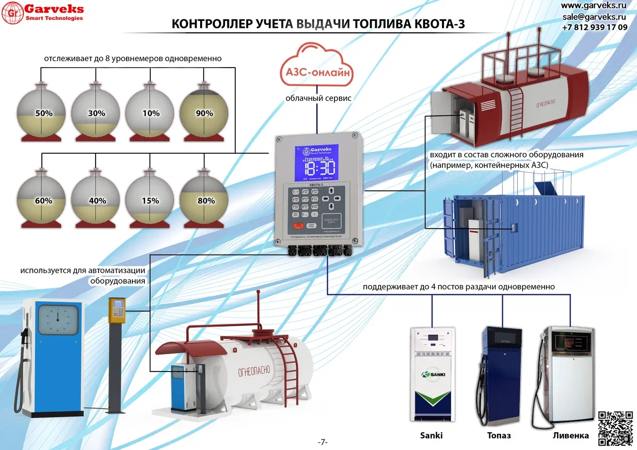 Контроллеры — это устройства, устанавливаемые на объекты, где требуется автоматизировать учет и безоператорный отпуск топлива или иных жидкостей. Контроллеры полноценно заменяют собой человека и лишены всех недостатков человеческого учета и контроля за движением топлива. Контроллеры Гарвекс — это современные, высокоэффективные и послушные сотрудники для Вашего предприятия.