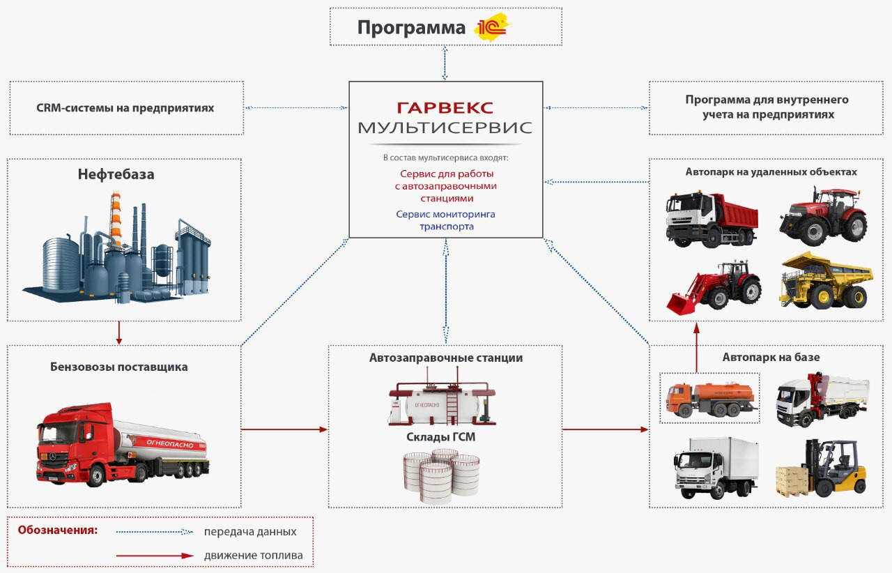 Ushbu majmua yordamida korxonada yoqilg‘i va AdBlue harakatining barcha bosqichlarini nazorat qilish mumkin. Buxgalteriya hisobi va emissiyasini quyidagi ob'ektlarda avtomatlashtirish mumkin: